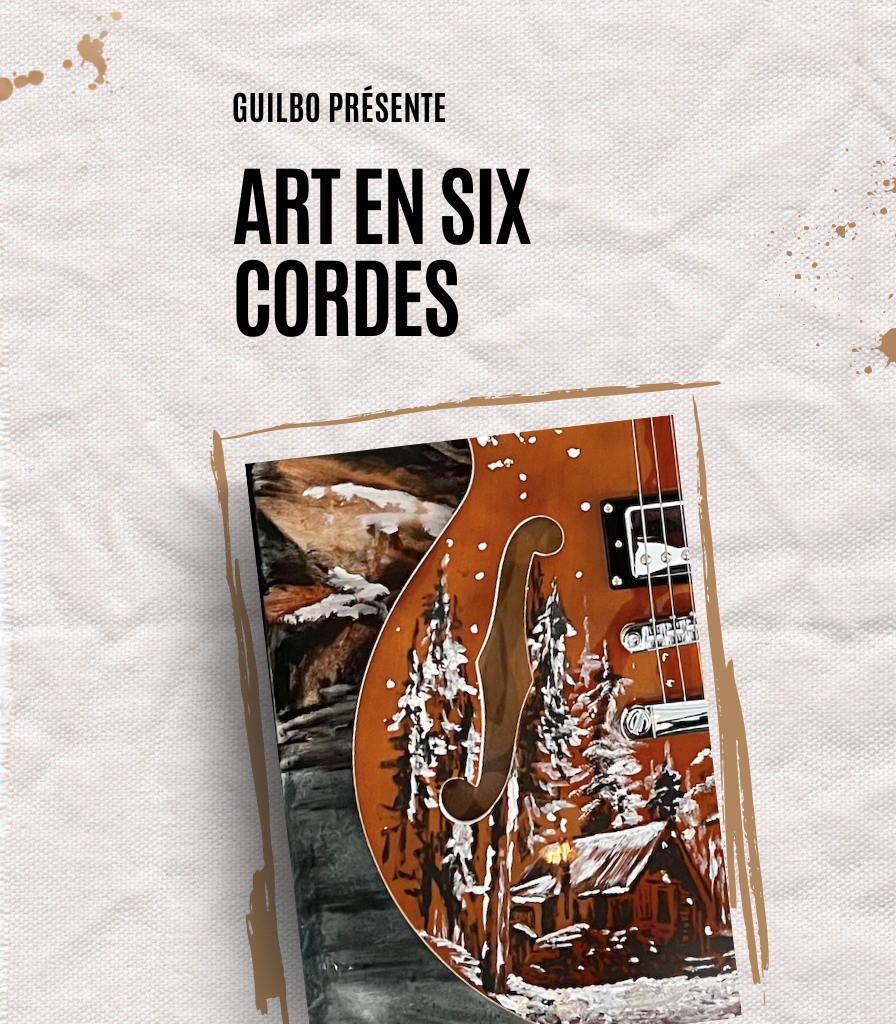 J’ai créé une collection de guitares métamorphosées en œuvres d’art ! Inscris-toi à mon infolettre pour tout savoir sur la nouvelle collection « ART EN SIX CORDES » et plus encore!